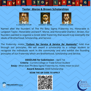 The DOS Crescent Foundation Inc., provides scholarship opportunities to the youth and young adults of Pinellas County to attend colleges and universities or vocational institutions. Scholarship opportunities are available throughout the academic year for elementary, middle, and high school students and collegians.